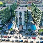 Alezzi Beach Resort Family Studio 那沃达利还提供按摩浴缸,桑拿 和一个室内游泳池,让客人放轻松. 这家公寓距离伏达里假日营地有2.2公里的路程,距离Plaja Navodari有1.8公里的路程.